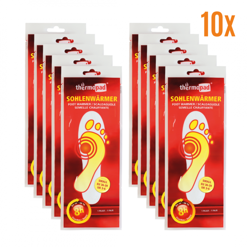 10x Sohlenwärmer, selbstheizend wird aktiviert durch Luft, bis zu 8h, einfach auf der zu wärmenden Stelle anlegen, absolut geruchlos! Für den Einmalgebrauch. Gebrauchsanweisung und Warnhinweise auf der Verpackung.