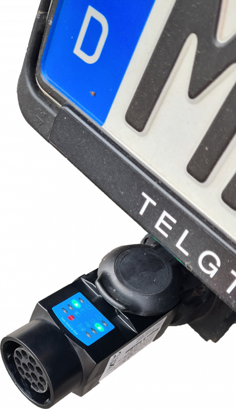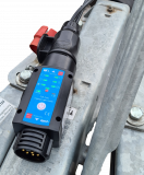 Zwei Testdisplays - je eines auf der Ober- als auch Unterseite sind gut einsehbar. Das Prüfgerät kann direkt an den Anhänger angeschlossen werden. Außerdem kann man die Steckdose am Fahrzeug auf Funktionsfähigkeit prüfen (Bremse natürlich nur bei Betätigung).