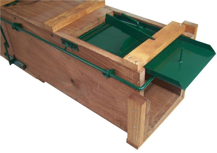 2x Holzkastenfalle mit 2 Metallklappen (endlich Schluss mit klemmenden Holzklappen) und Kontrollfenster, ca. Maße LxBxH = 118x26x26 cm, leichtgängig, Gewicht ca. 15 kg, keine Verblendung notwendig, bitte beachten Sie die Jagdgesetze!
