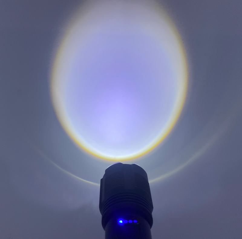• Fokussierbare Glaslinse: Ermöglicht eine präzise Anpassung des Lichtkegels durch Hoch- und Herunterziehen des Lampenkopfs.