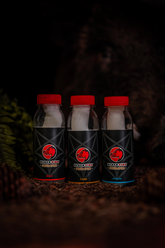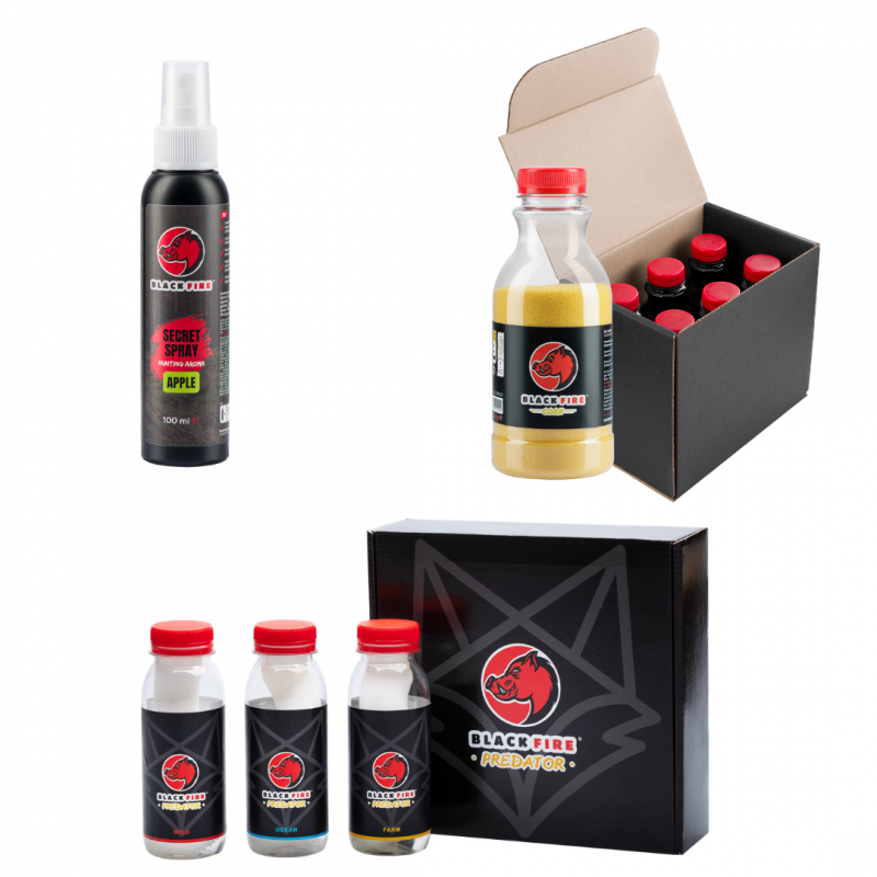 3er Set BLACK FIRE Probierpaket - 3x Predator Raubwild, Corn Schwarzwild, Secret Spray Apple Raubwild Lockmittel