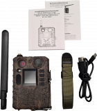 2 black LED's mit 940nm + weiße LED's, 37 Mio.-Pixel (4 MP CMOS Sensor), 4K Videos, 1,44'' TFT Bildschirm, lassen Sie die Fotos dann auf Ihr Handy per 4G/LTE oder als email auf den PC versenden. 24-Stunden rund um die Uhr. Mit spezieller Antenne für optimale Funkverbindung. Durch 940nm Infrarottechnik Bilder und Videos ohne Blitz bei Nacht oder als weiße LED's mit Blitz! Infrarotreichweite ca. 30 m! IR oder weiße Ausleuchtung bis ca. 25 m, Kamera-Einstellung per Computer, Fernbedienung vor Ort oder per SMS vom Smartphone aus: 1 bis 3 Fotos je Auslösung. Videos 5-60 Sek., Videos mit Tonaufnahme! Technische Daten: Automatischer Weißabgleich, Objektivbrennweite 2,4; Blickwinkel 57°; PIR Bewegungsmelder bis 30 m, 1,44'' TFT Bildschirm für Video und Bildvorführung, für Batterieanzeige und Programmierung. Mit USB Kabel, Gurtband für Baumbefestigung. Wetterfestes Gehäuse, extrem kleine Maße ca. LxBxH = 115x81x45 mm, Gewicht ca. 174 g (ohne Akkus). Betrieb über 2 Stück 18650 Akkus (nicht im Lieferumfang), Aufladung über USB 5V/2A, Energieverbrauch < 7mAh/Tag. Kartenschacht für: TF Karten 8 bis 32 GB und Handy-SIM Karte (beide nicht im Lieferumfang!).
