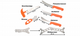 Weiche soft-touch Griffe in orange: Die Farbe führt die Hand zum Griff und nicht zur Klinge!