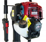 Motor-Pfahlramme, mit Honda Motor, 1,47 KW / 2,0 PS, 47,9 ccm, 4 Takt, 7000 U/min, Pfähle bis 10 cm Durchmesser fasst wie von selbst einschlagen mit 820 bis 1200 Schlägen pro Minute! Einschlagenergie 25 bis 50 J. Tank ca. 0,63L. Pfähle mit einem Durchmesser von 10 bis 12 cm können mit dem zusätzlichen Adapter (nicht im Lieferumfang) eingeschlagen werden. Gewicht ca. 18,5 kg, Maße ca. LxBxH = 73x38,9x29cm. Die Pfahlramme wird geliefert in einem robusten schwarzen Transportkoffer mit Griff und Rollen.