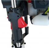 Motor-Pfahlramme, mit Original Kawasaki MotorTJ-45E, 1,42 KW / 1,9 PS, 45,4 ccm, 2 Takt, 7500 U/min, Pfähle von 1 cm bis 10 cm Durchmesser fasst wie von selbst einschlagen mit 820 bis 1200 Schlägen pro Minute! Einschlagenergie 25 bis 50 J. Tank ca. 0,9L. Pfähle mit einem Durchmesser von 10 bis 12 cm können mit dem zusätzlichen Adapter (nicht im Lieferumfang) eingeschlagen werden.