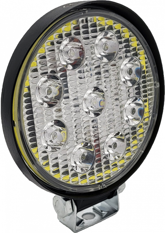 LED Arbeitsscheinwerfer rund, 9x3 W, ca. 2700 Lumen, Gehäuse Aluminium, Glas Polycarbonat, Technische Details: Leuchtmittel: 9 x Hochleistungs-LED Osram, Leistung: 27 Watt (9 x 3Watt), Spannung: 10-30 Volt, Lichtintensität: ca. 2700 Lumen, Schutzklasse: IP68, Abmessungen (BxHxT): ca. 113 x 113 x 25 mm, Lebensdauer: ca. 30.000 Stunden, Nahbereichsstreulinse 60° (kurz und breit), Lichtfarbe 6000K, E9 10R-05.16140