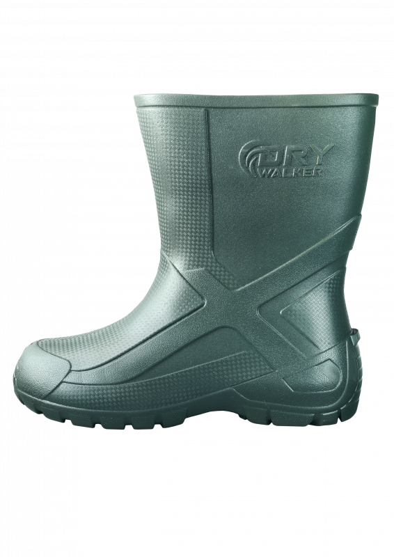 Dry Walker Xtrack Short Gummistiefel, Gr. 40 bis 47, grün, 100 % EVA Material (Hochwertiger Kunststoff), superleicht (ca. 400-600g) und isolierend (bis ca. -30°C), wasserdicht, mit spezieller Fersensohle, mit Microfaserinnensocke gefüttert und Cordbündchen